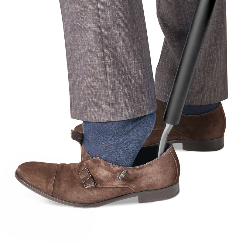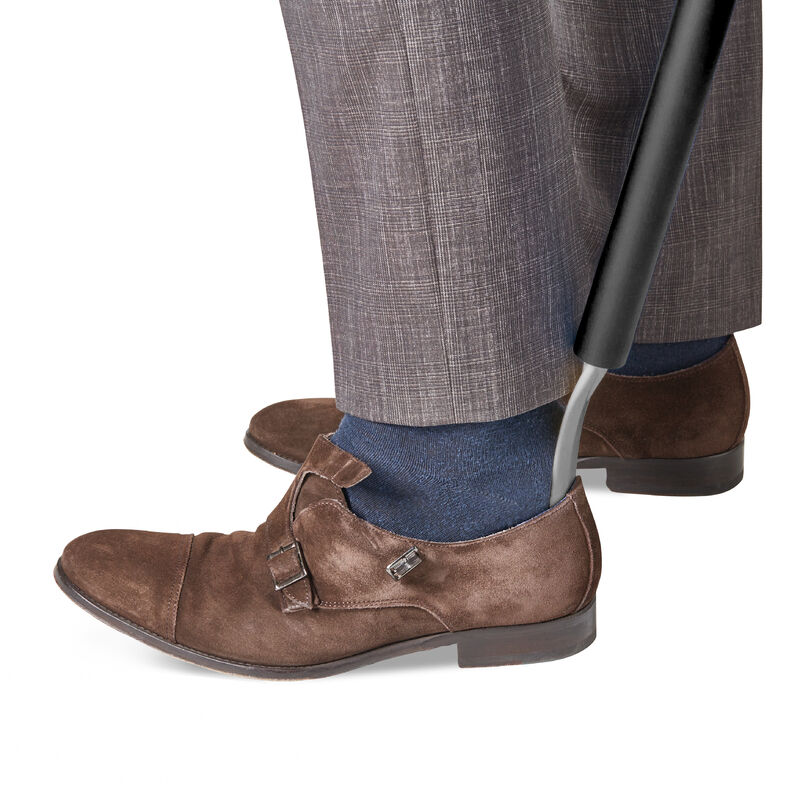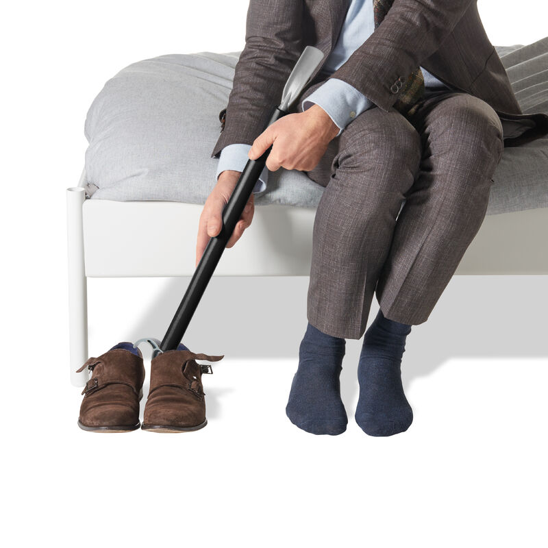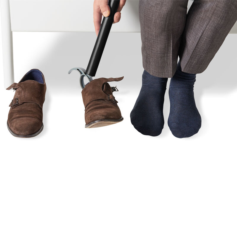 I den ene ende finder du en solid krog, som gør det nemmere at tage jakker, bukser, trøjer eller sokker på og af – uden at du behøver at bøje dig, strække dig eller overanstrenge skuldrene. I den anden ende sidder et praktisk skohorn, så du kan tage sko på uden at bukke dig for langt ned. Kombinationen gør påklædningspinden til et alsidigt hjælpemiddel, der kan bruges til hele din påklædningsrutine.