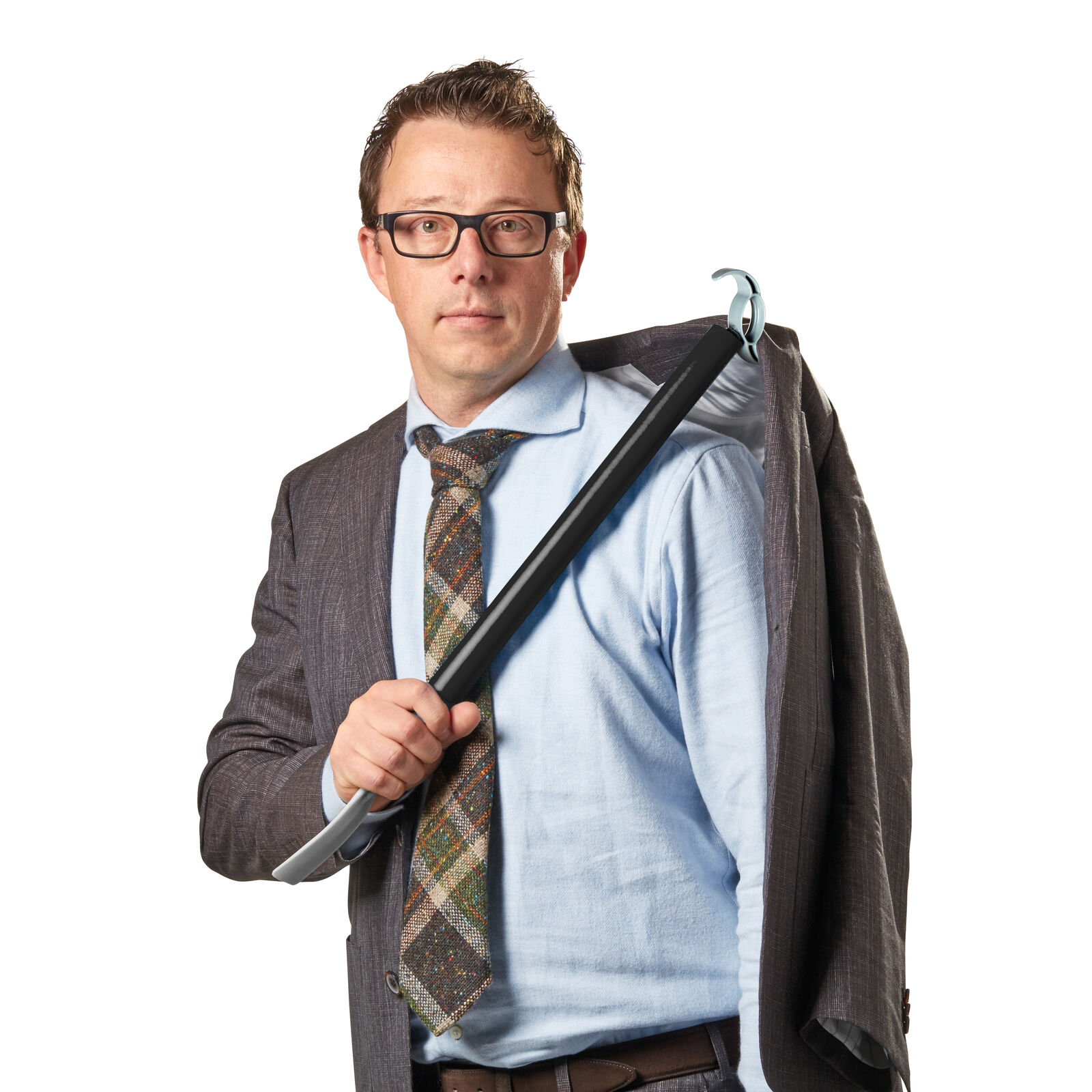 Krogen i enden gør det nemt at tage tøj på og af – f.eks. jakker, bukser, sokker eller sko – uden at du behøver at bøje dig eller løfte armene højt.